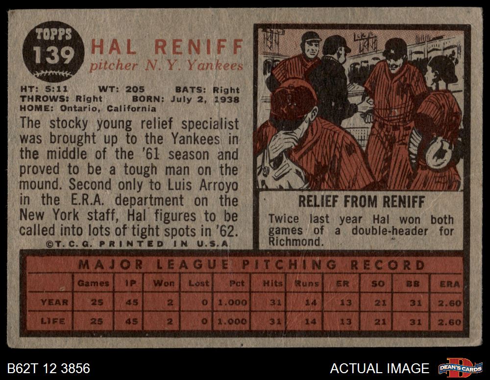 1962 Topps #139 POR Hal Reniff Front Thumbnail