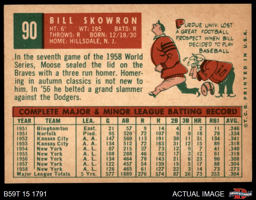 1959 Topps #90 Bill Skowron 6 - EX/MT