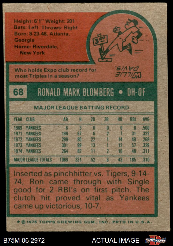 1975 Topps Mini #68 Ron Blomberg 3 - VG