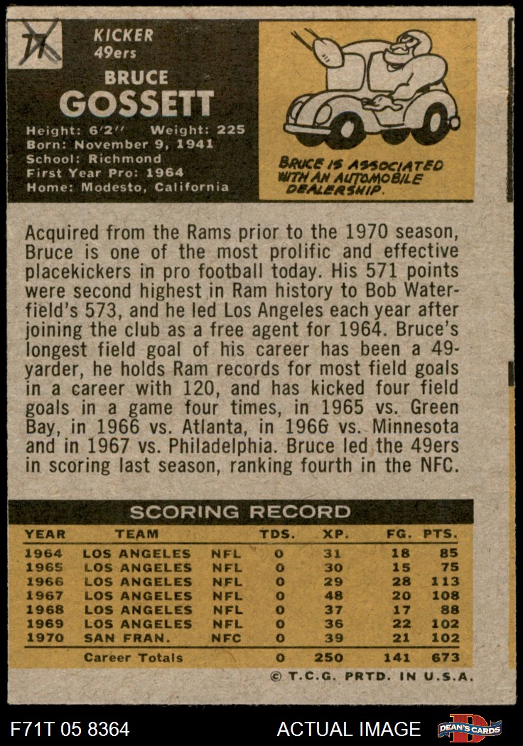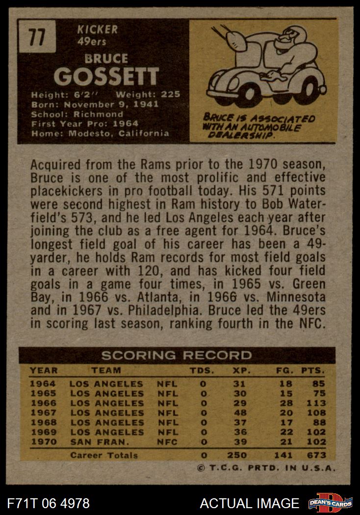 1971 Topps Football Cards (5,408 available)1971 Topps 49ers (189 available)