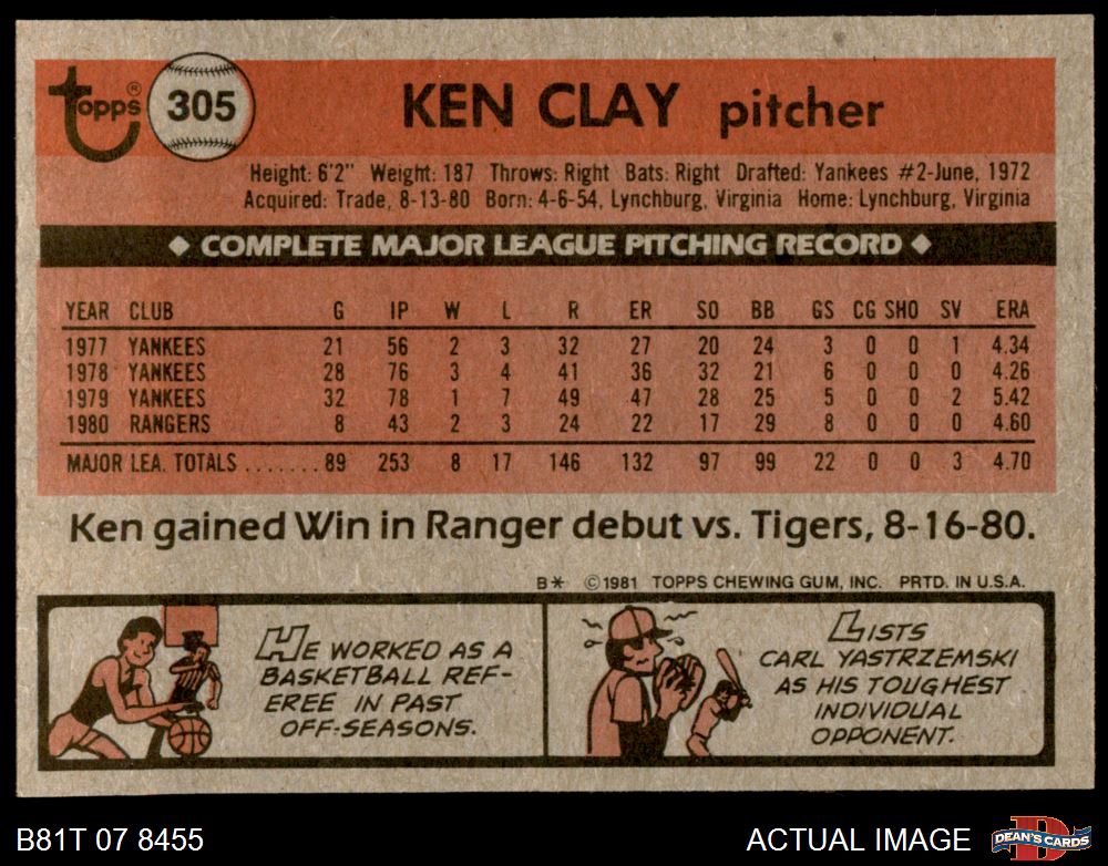 1981 Topps #305 Ken Clay