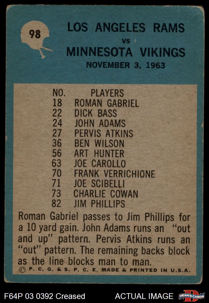 1964 Philadelphia #98 - Harland Svare Los Angeles Rams Play 2 - GOOD