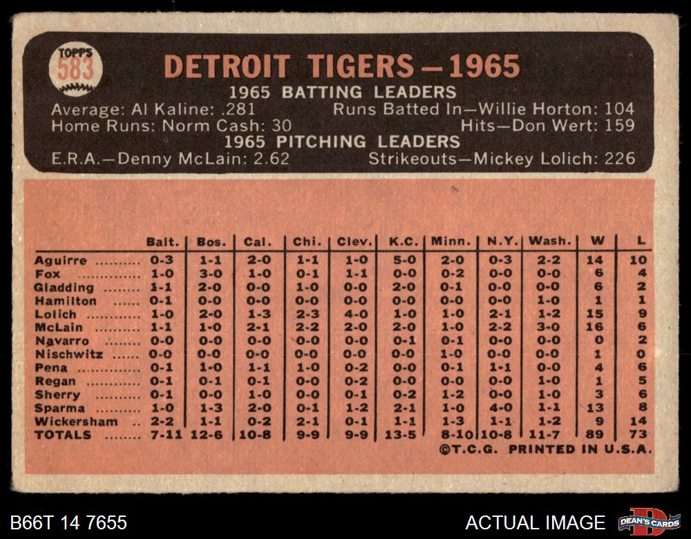 1966 Topps #583 Says Tigers finished in "3rd Place" on Front - instead of 4th Tigers Team 1 - POOR