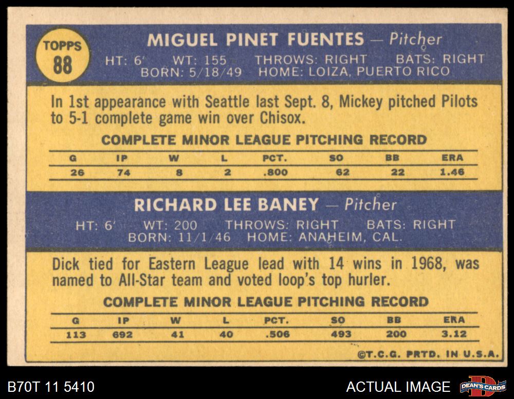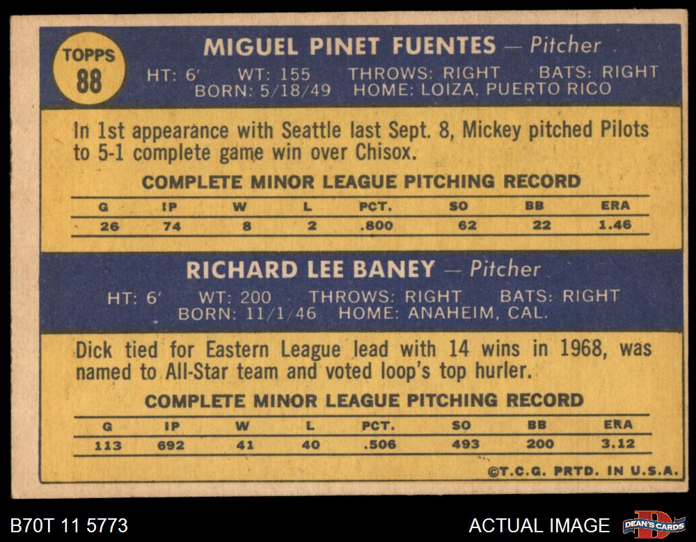 1970 Topps #88 - Dick Baney / Miguel Fuentes Pilots Rookies 5 - EX