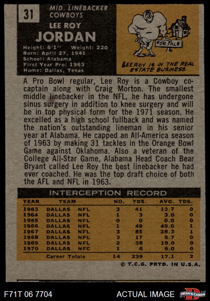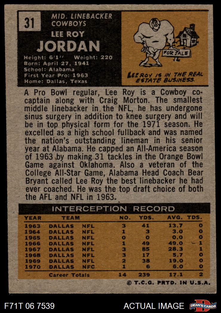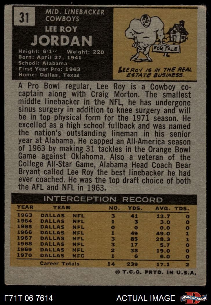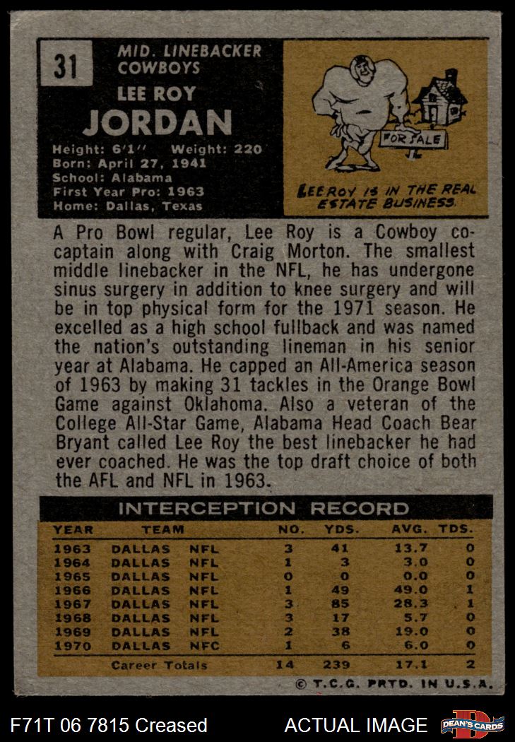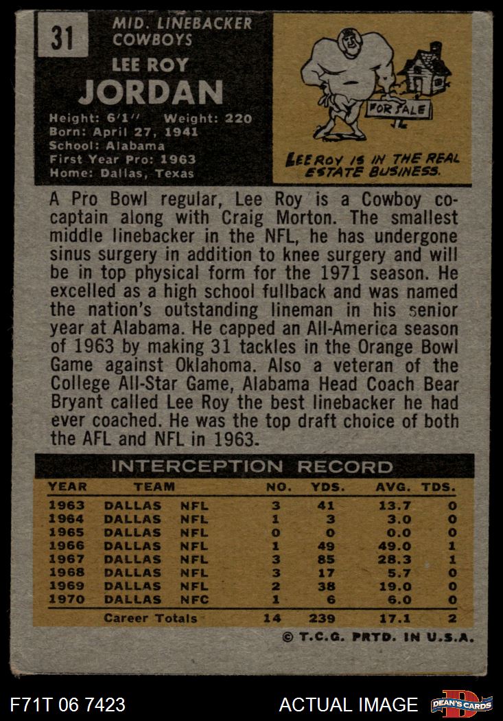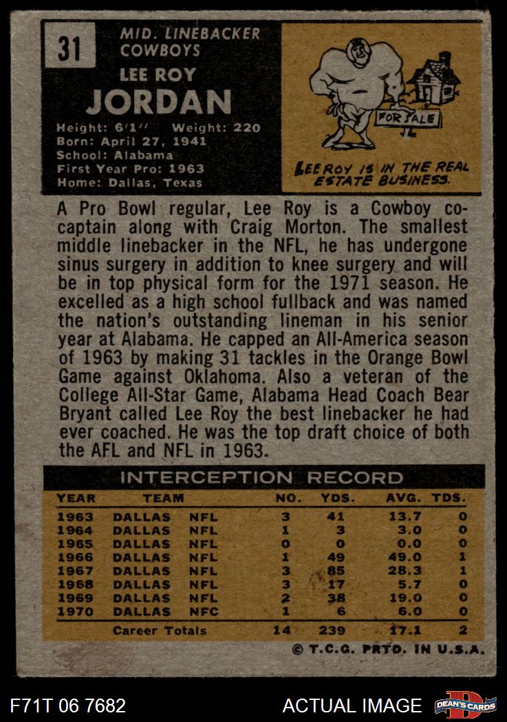 1971 Topps #31 Lee Roy Jordan