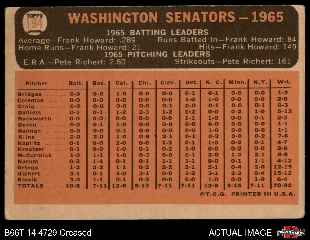 1966 Topps #194 Senators Team 1.5 - FAIR