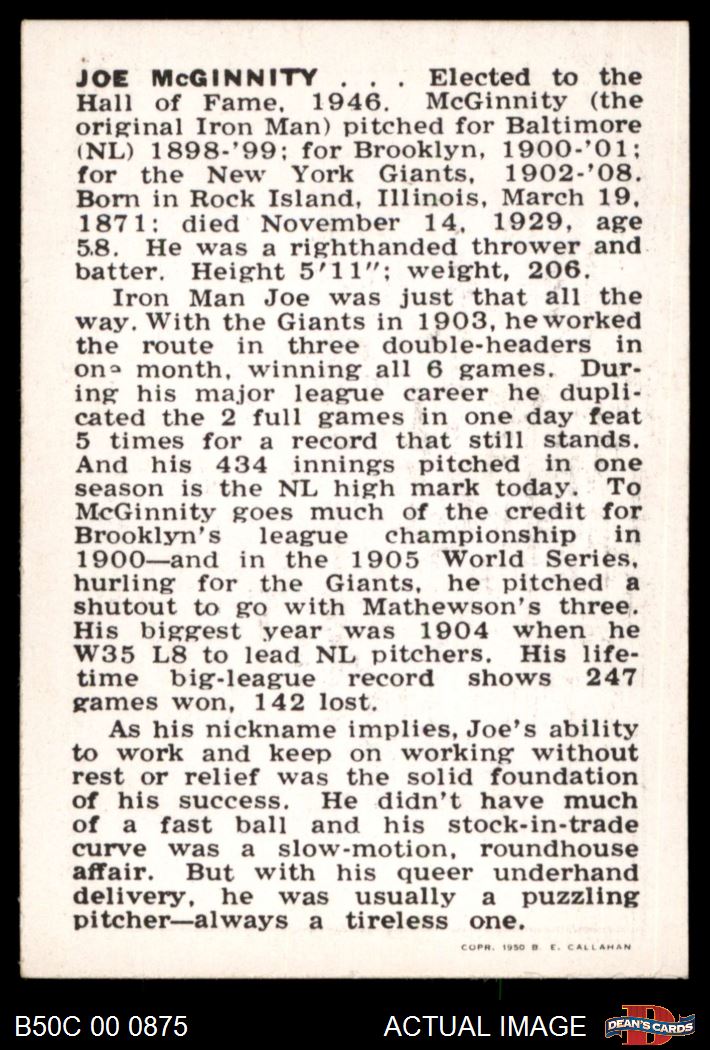 1950 Callahan Hall of Fame Iron Man McGinnity 8 - NM/MT