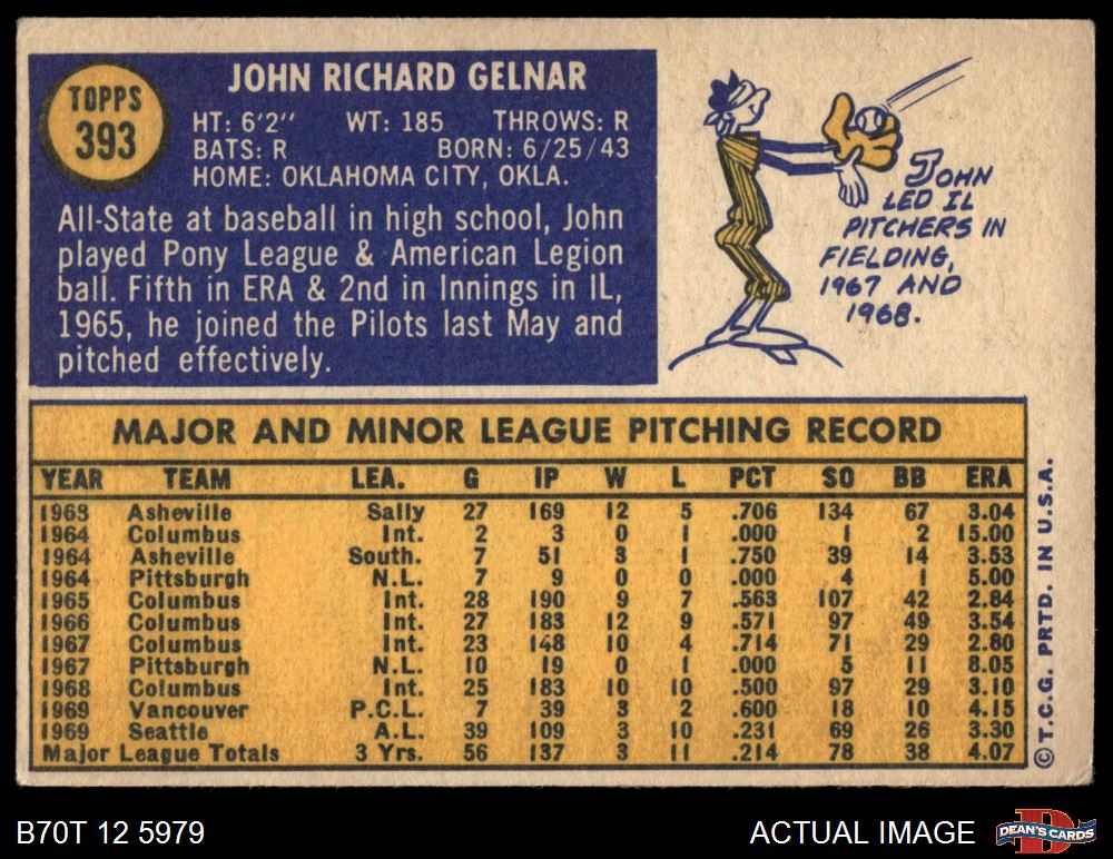 1970 Topps #393 John Gelnar 4 - VG/EX