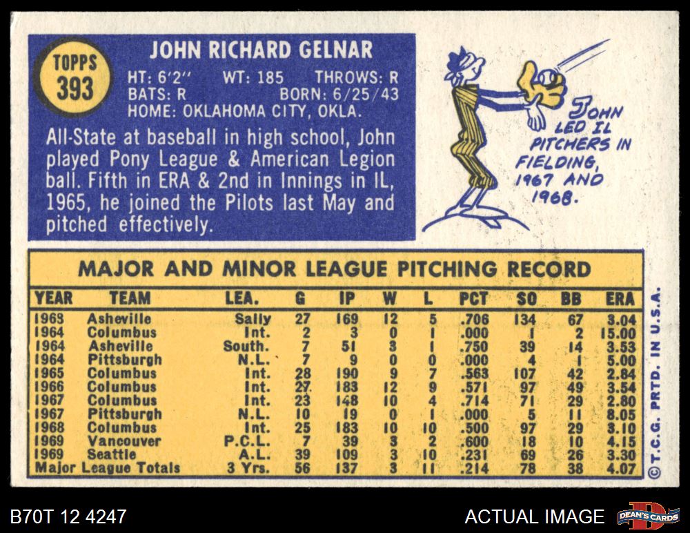 1970 Topps #393 John Gelnar 5 - EX