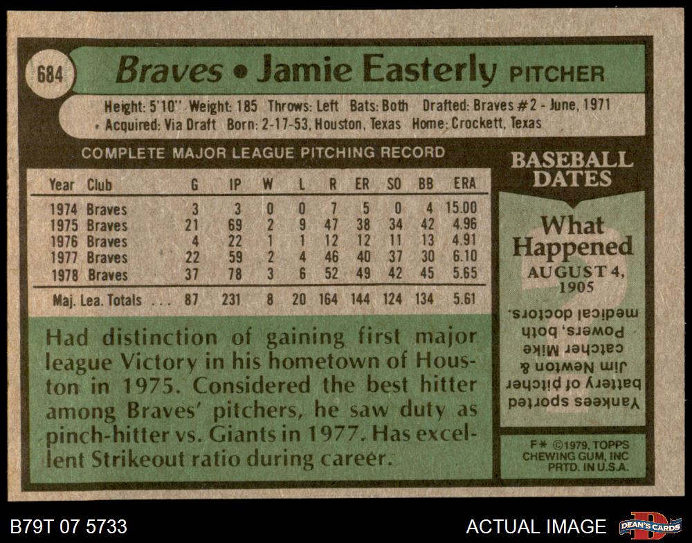 1979 Topps #684 Jamie Easterly 6 - EX/MT