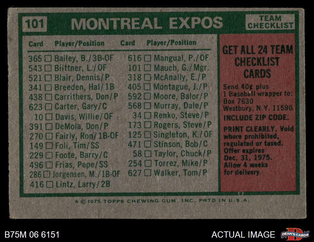 1975 Topps Mini #101 - Gene Mauch Expos Team Checklist 3 - VG