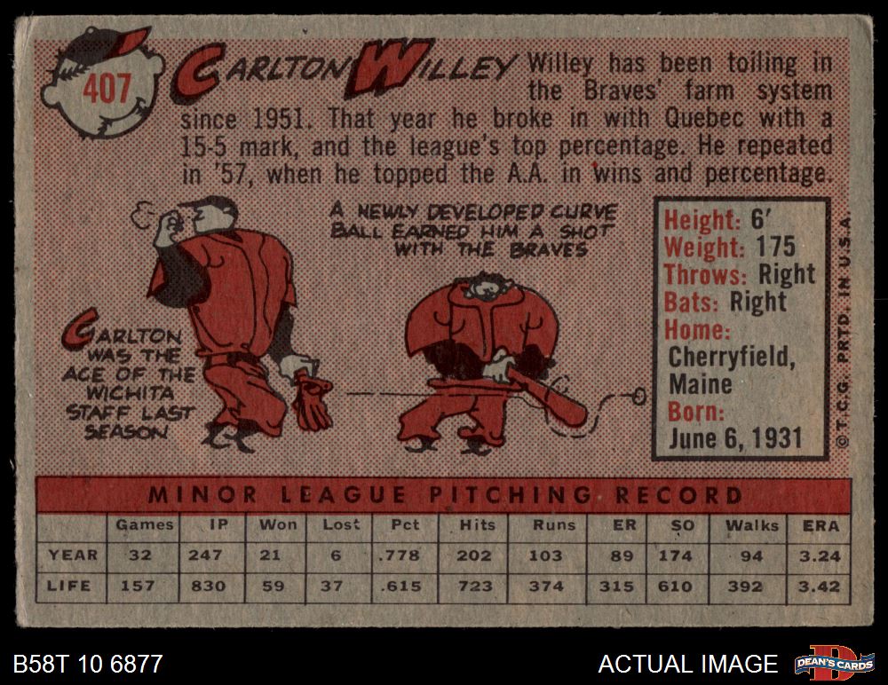 1958 Topps #407 Carlton Willey 2.5 - GD+