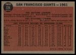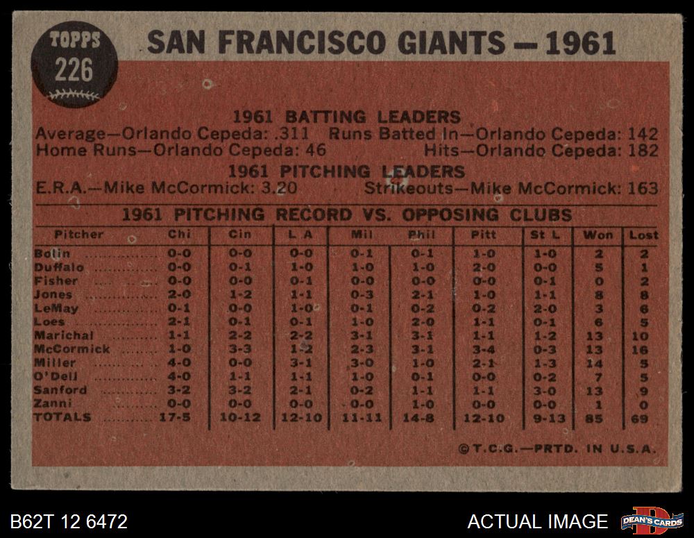 1962 Topps #226 Giants Team 3 - VG