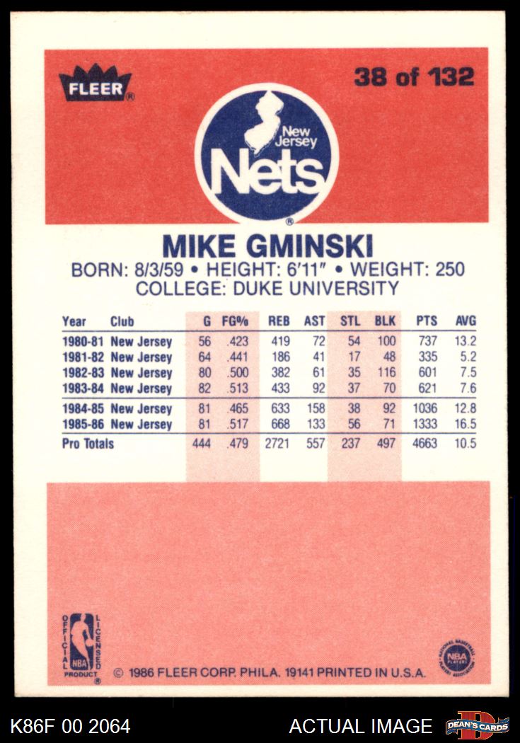 1986 Fleer #38 Mike Gminski 8 - NM/MT