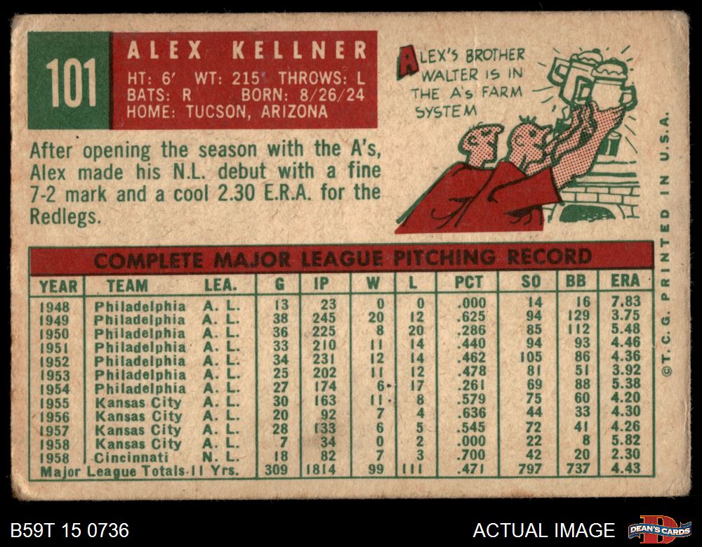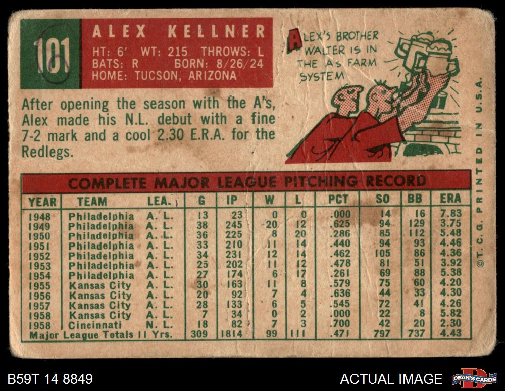 1959 Topps #101 Alex Kellner 1 - POOR