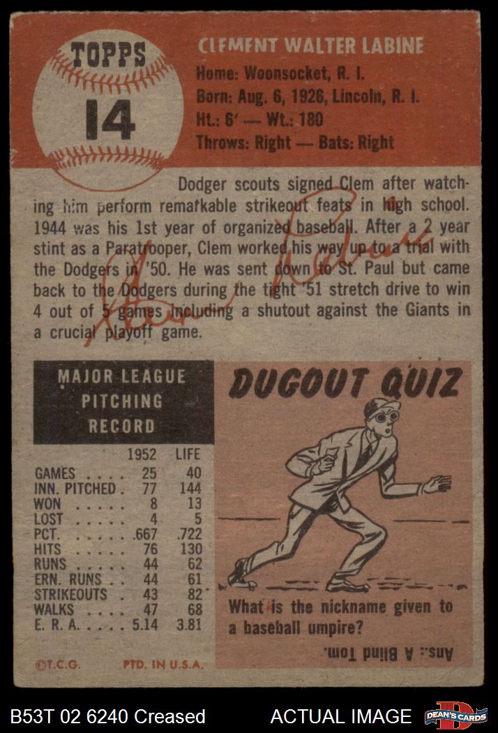 1953 Topps #14 Clem Labine 3 - VG
