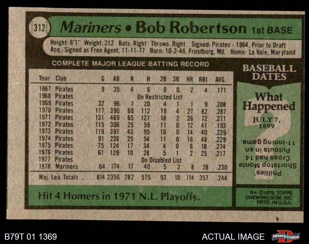 1979 Topps #312 Bob Robertson 4 - VG/EX