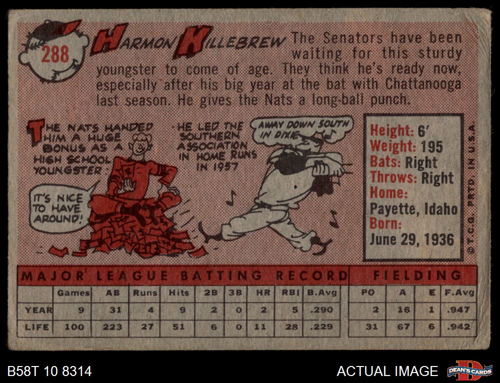 1958 Topps #288 Harmon Killebrew 1.5 - FAIR
