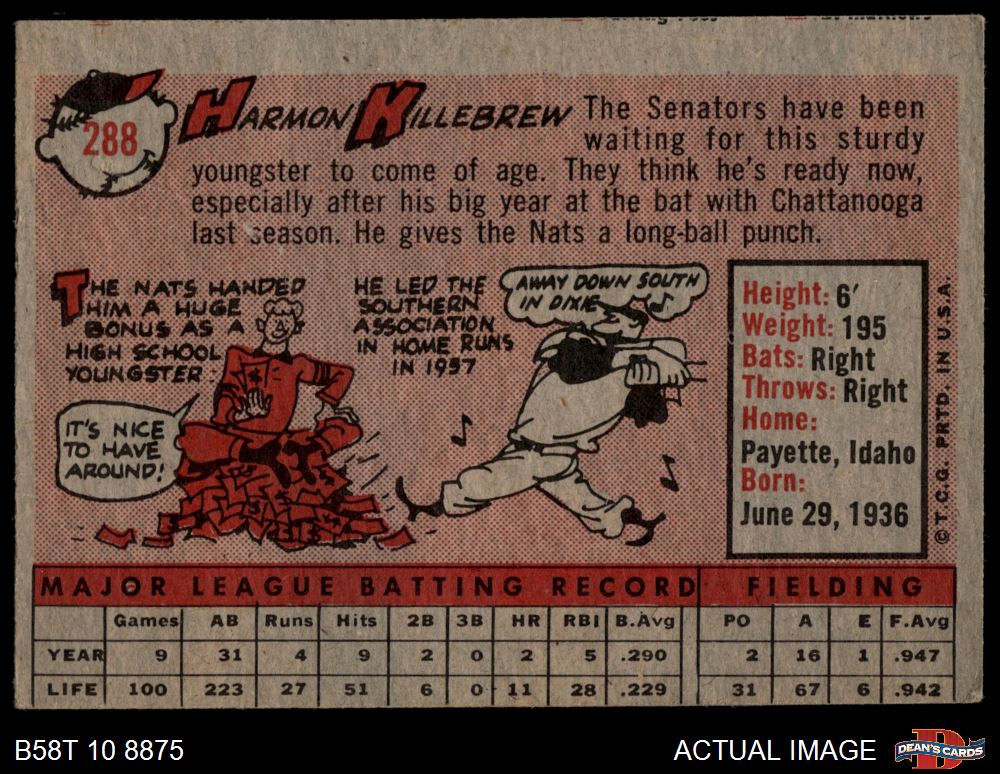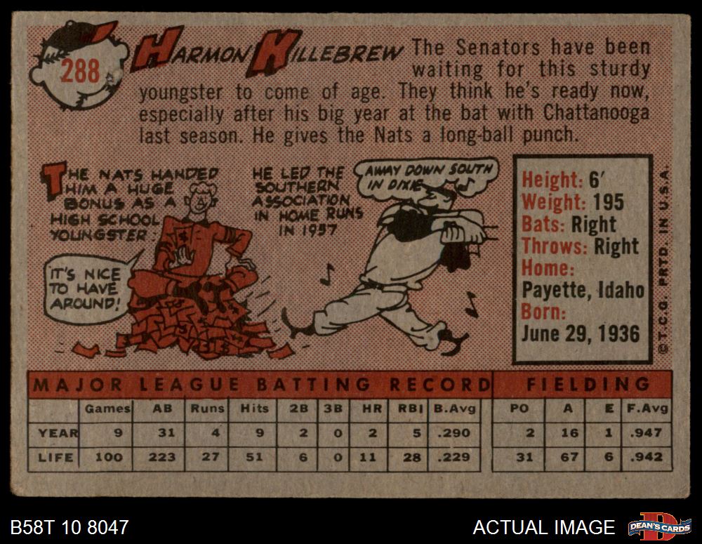 1958 Topps #288 Harmon Killebrew 3 - VG
