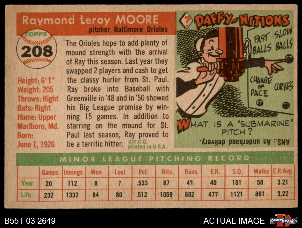 1955 Topps #208 Ray Moore 5 - EX