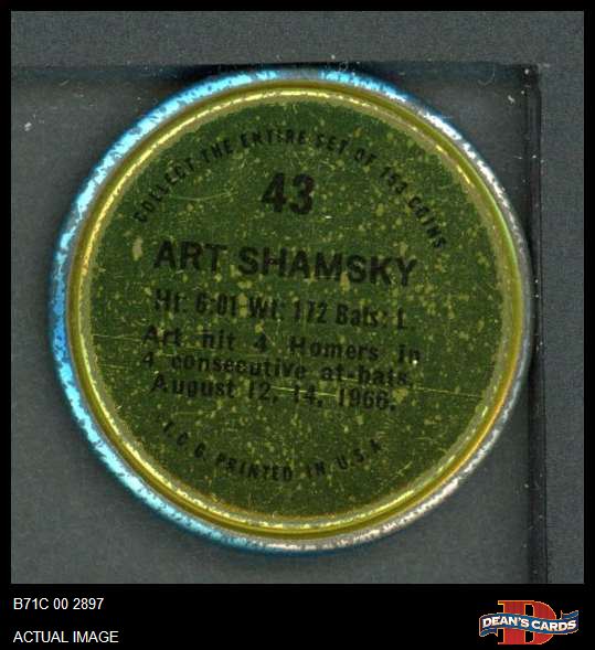 1971 Topps Coins #43 Art Shamsky 2 - GOOD