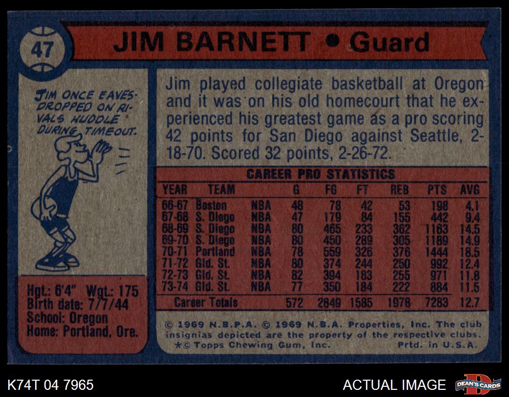 1974 Topps #47 Jim Barnett 6 - EX/MT