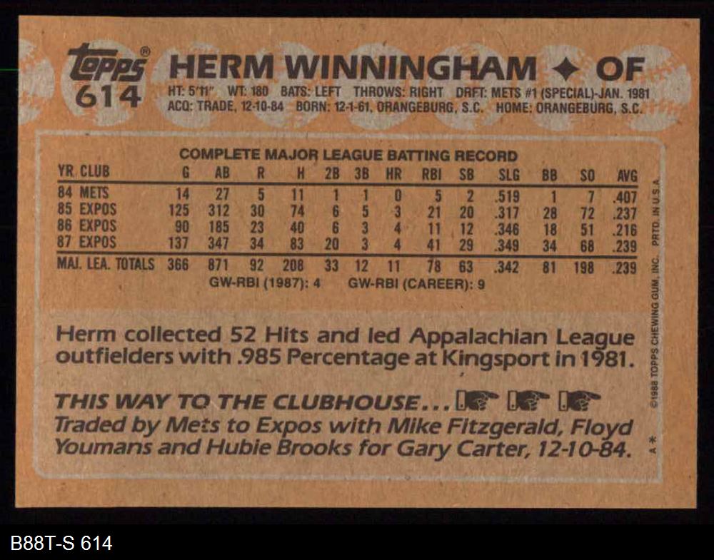 1988 Topps #614 Herm Winningham 8 - NM/MT