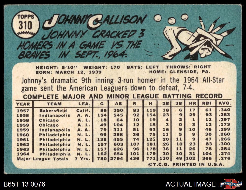 1965 Topps #310 Johnny Callison 2 - GOOD