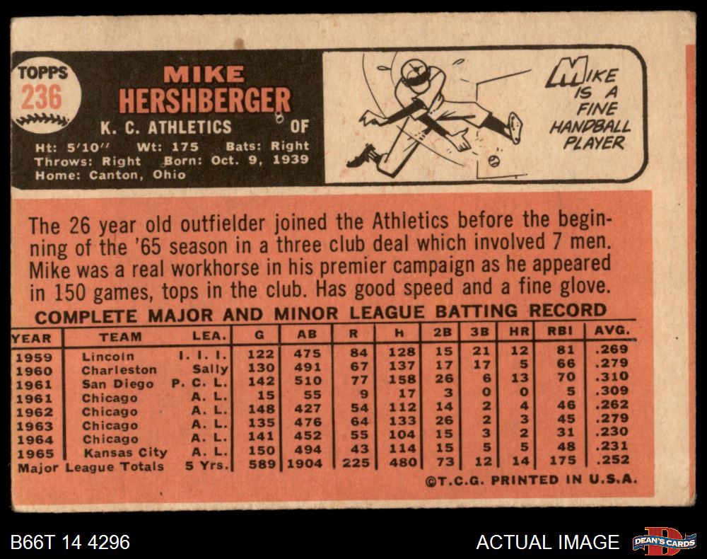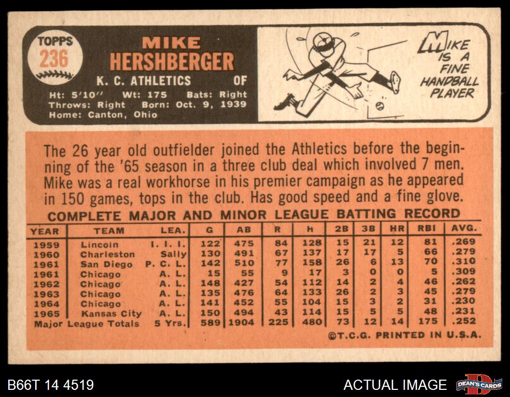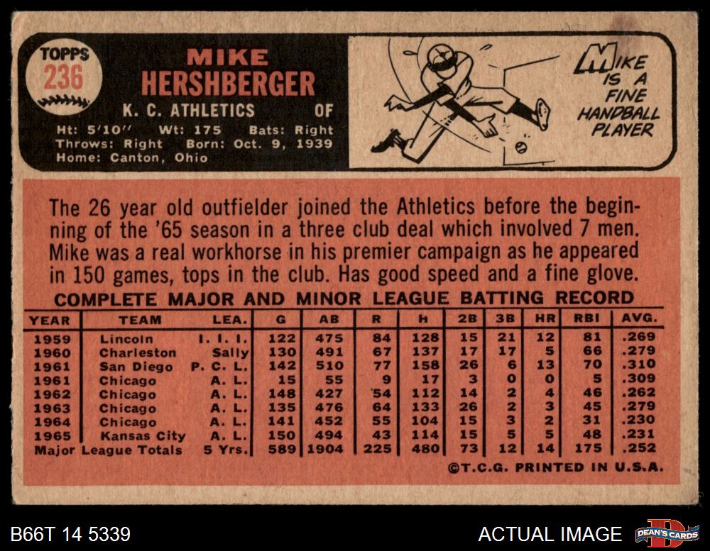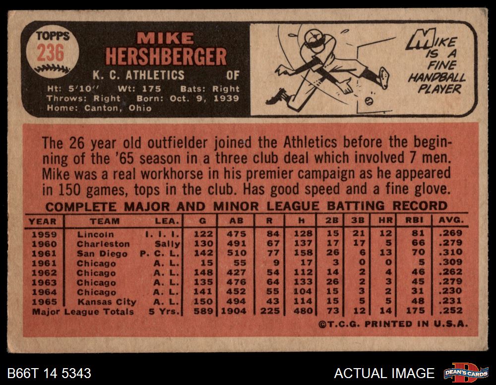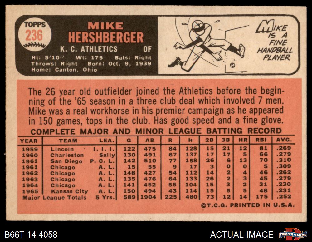 1966 Topps #236 Mike Hershberger