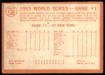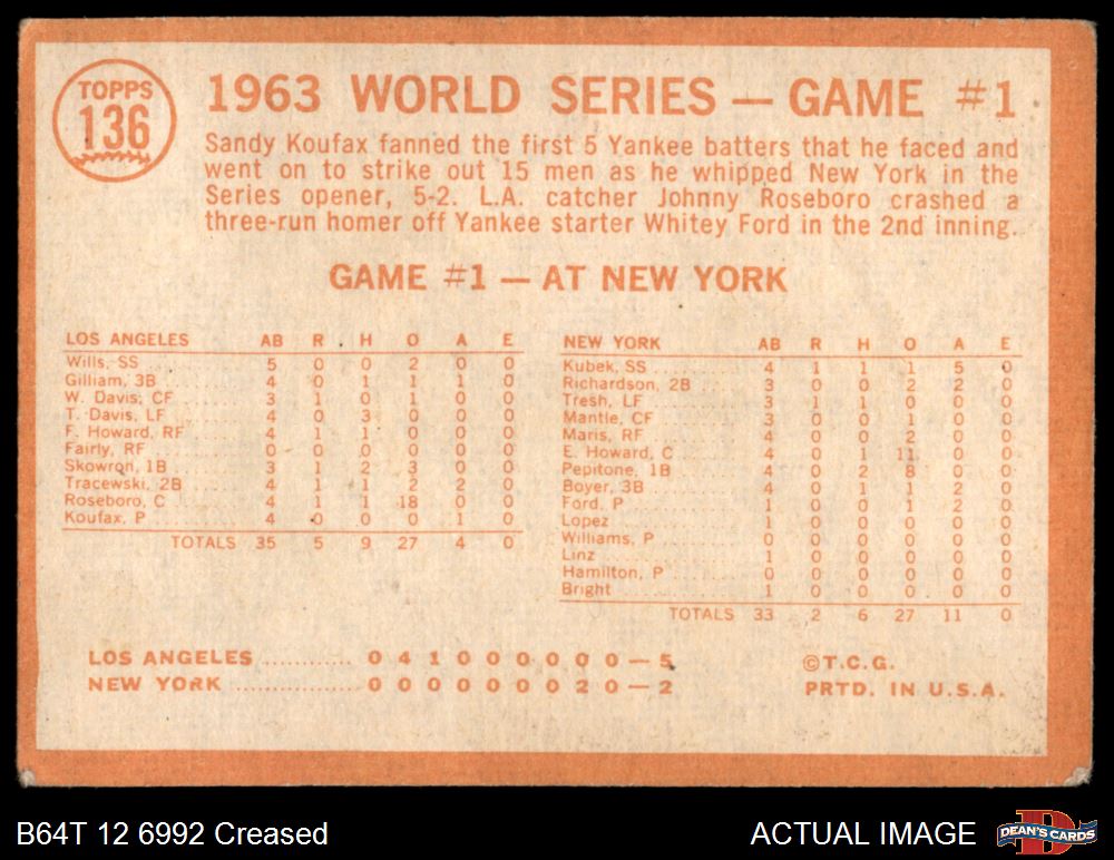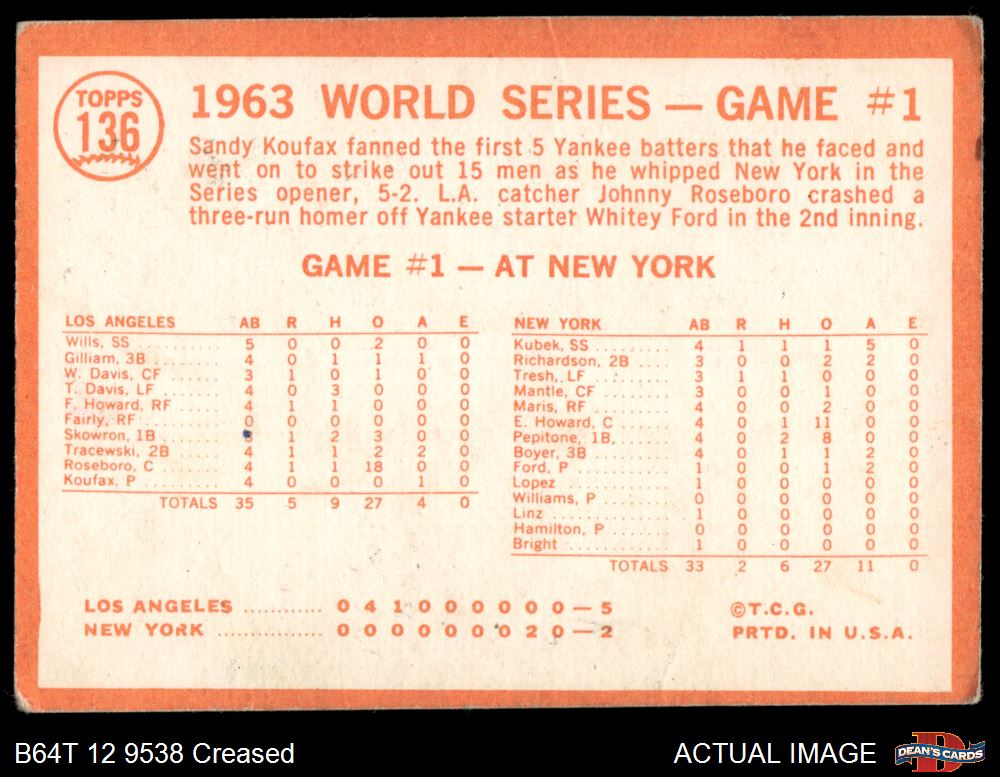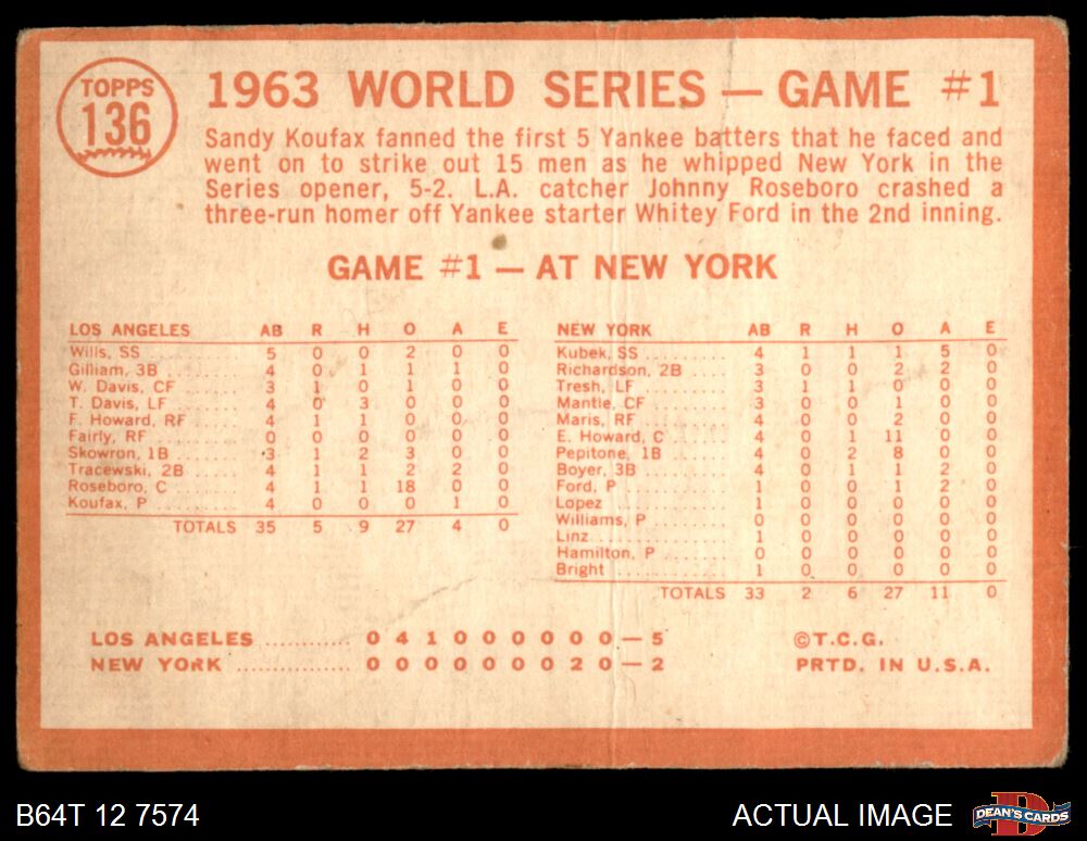 1964 Topps #136 - Sandy Koufax 1963 World Series - Game #1 - Koufax Strikes Out 15 1 - POOR