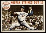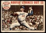 1964 Topps #136  -  Sandy Koufax 1963 World Series - Game #1 - Koufax Strikes Out 15 Front Thumbnail