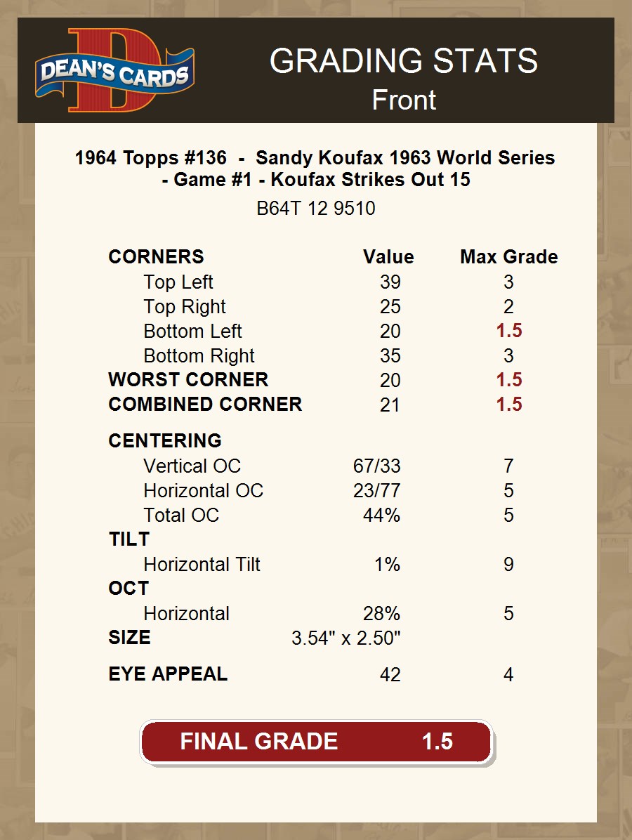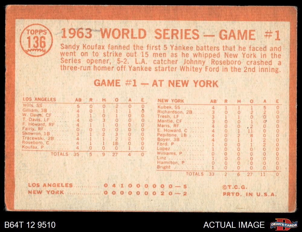 1964 Topps #136 - Sandy Koufax 1963 World Series - Game #1 - Koufax Strikes Out 15 1.5 - FAIR