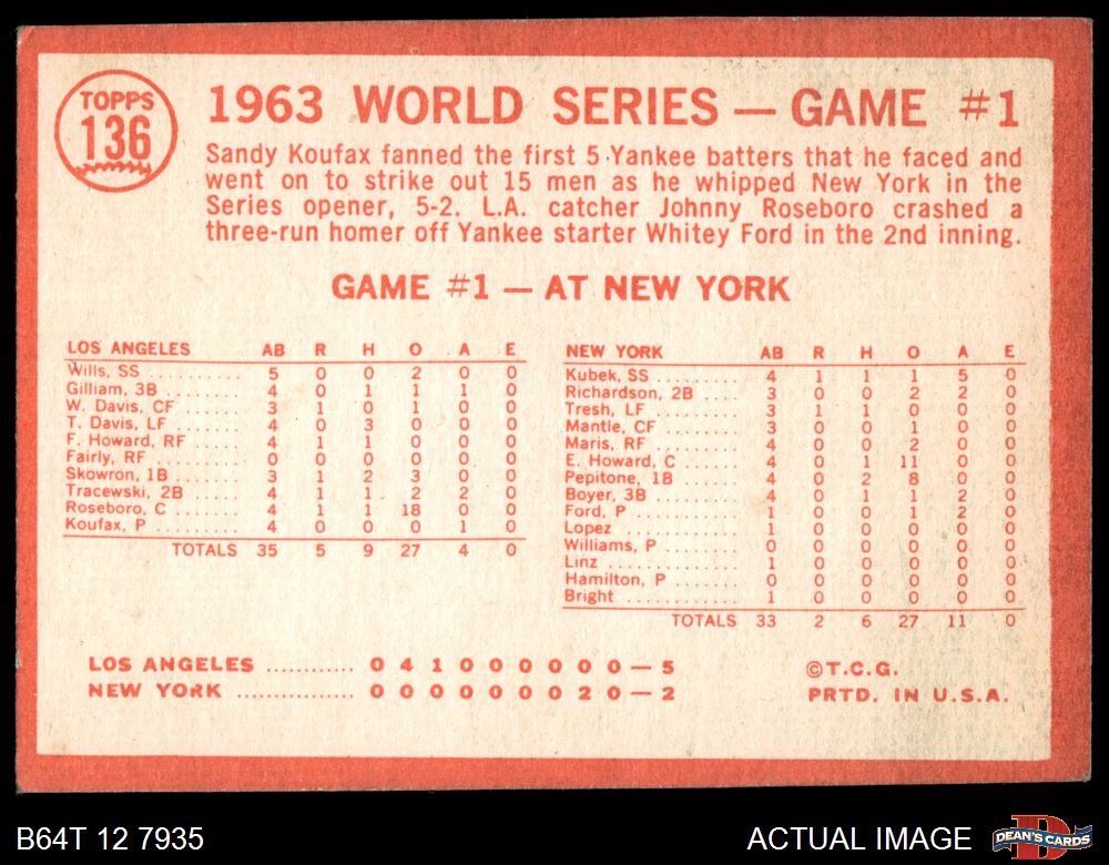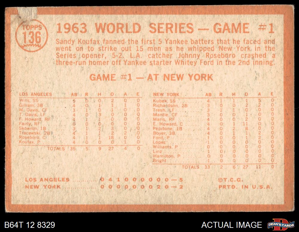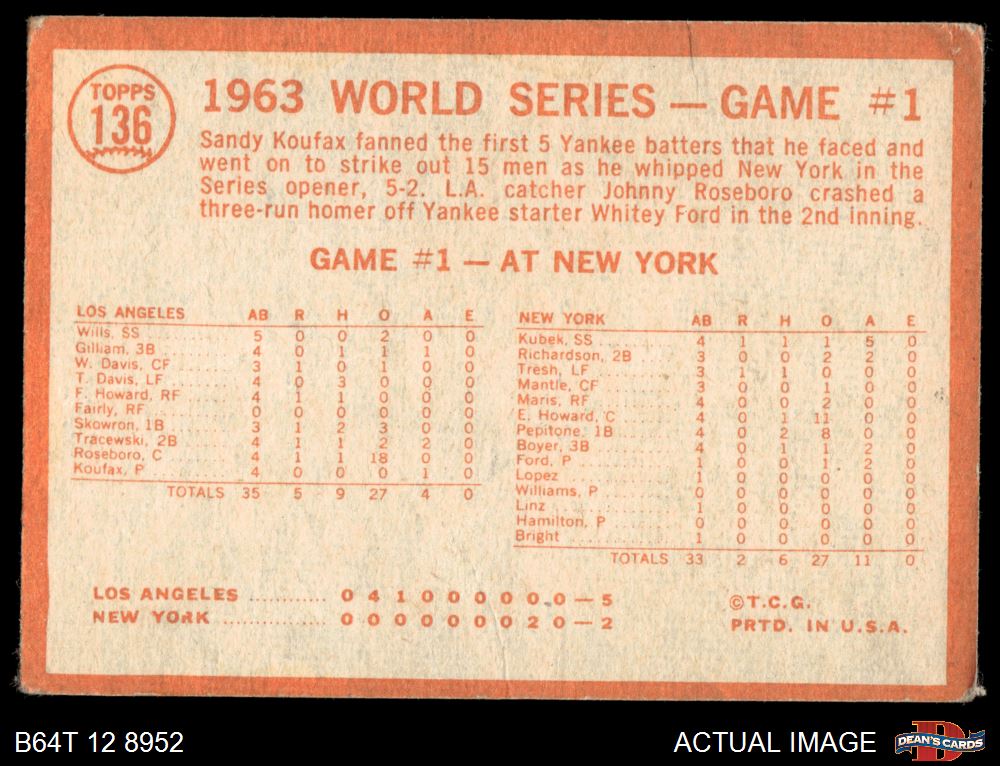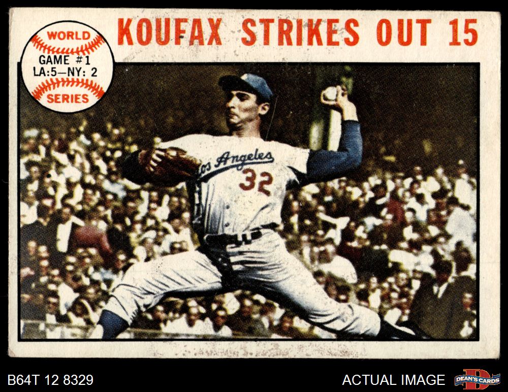 1964 Topps #136 - Sandy Koufax 1963 World Series - Game #1 - Koufax Strikes Out 15 2 - GOOD
