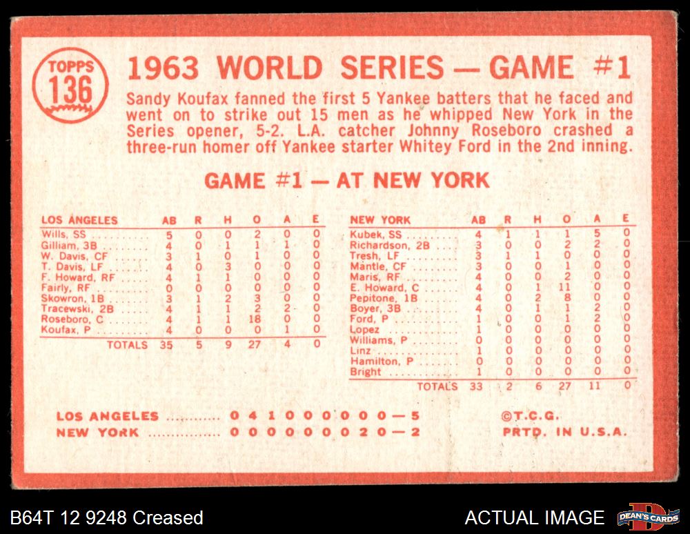 1964 Topps #136 - Sandy Koufax 1963 World Series - Game #1 - Koufax Strikes Out 15 2.5 - GD+