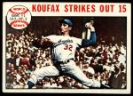 1964 Topps #136  -  Sandy Koufax 1963 World Series - Game #1 - Koufax Strikes Out 15 Front Thumbnail