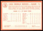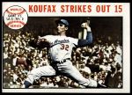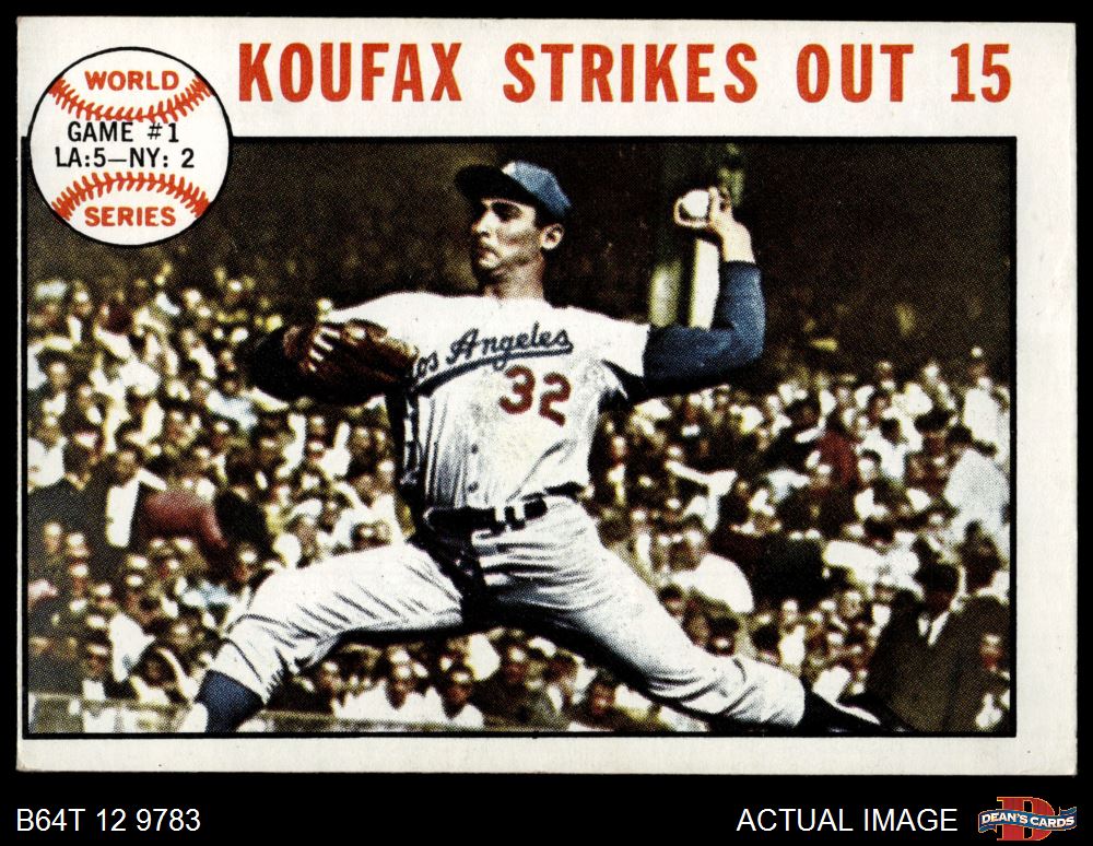 1964 Topps #136 - Sandy Koufax 1963 World Series - Game #1 - Koufax Strikes Out 15 4 - VG/EX