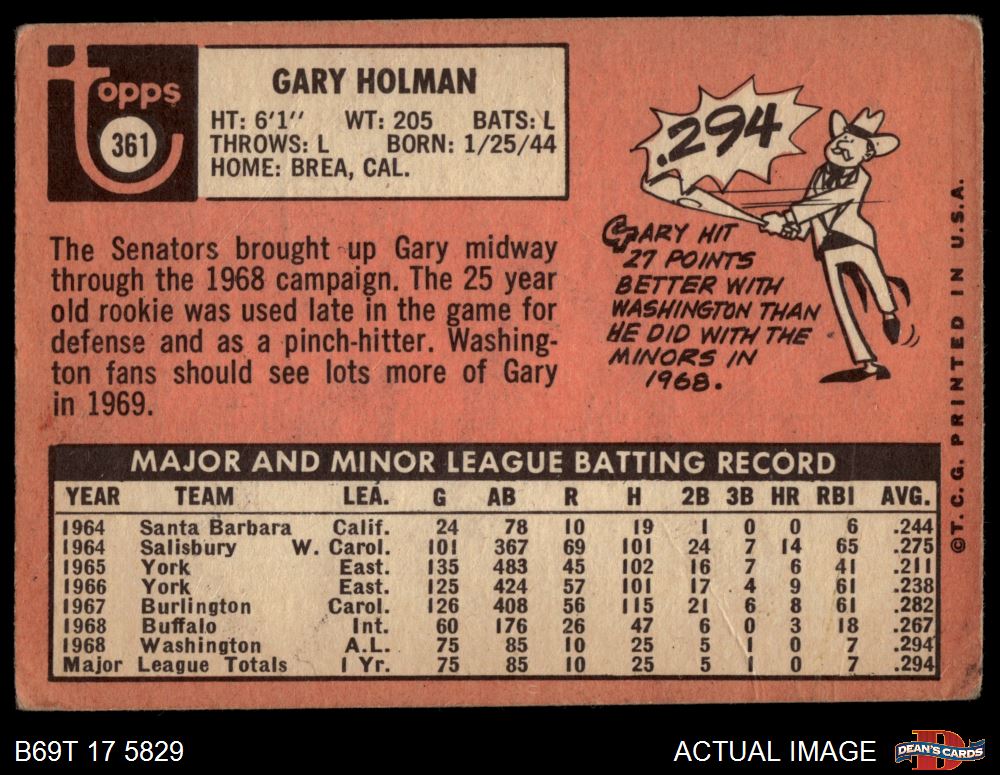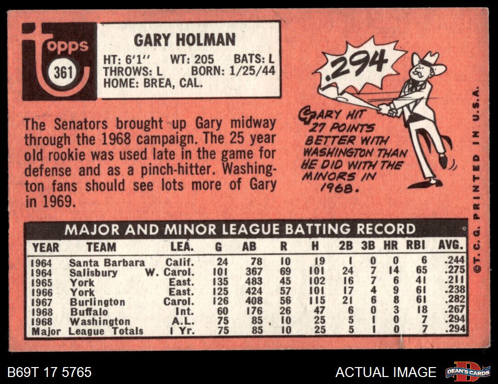 1969 Topps #361 Gary Holman 1.5 - FAIR