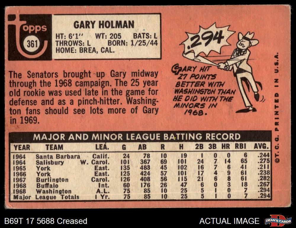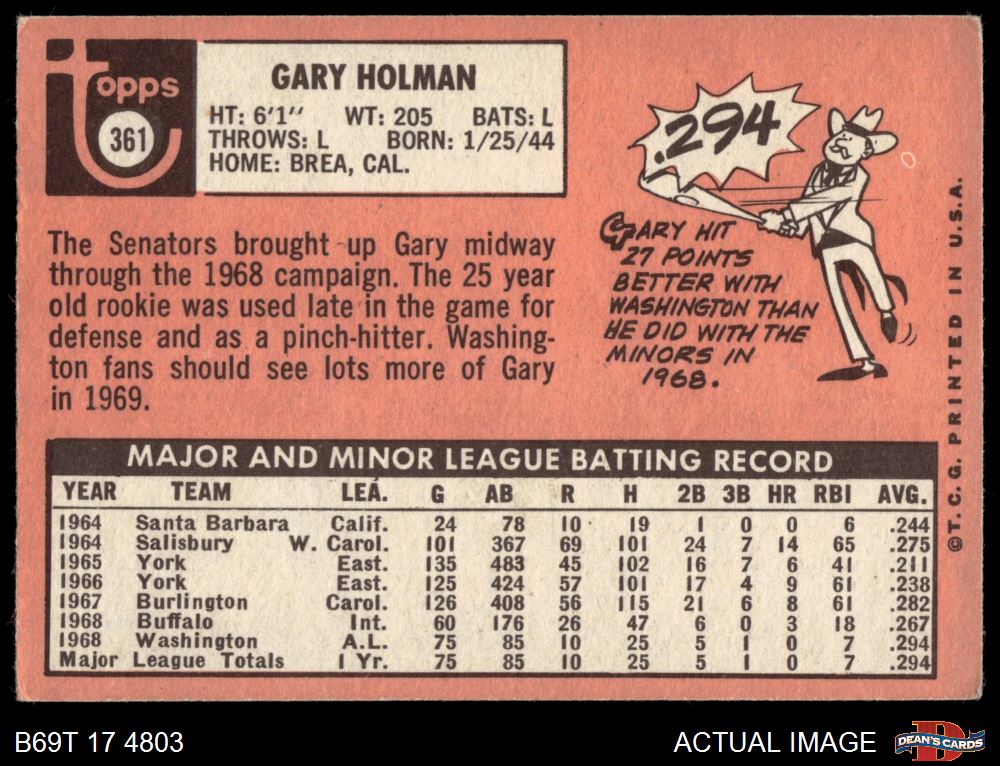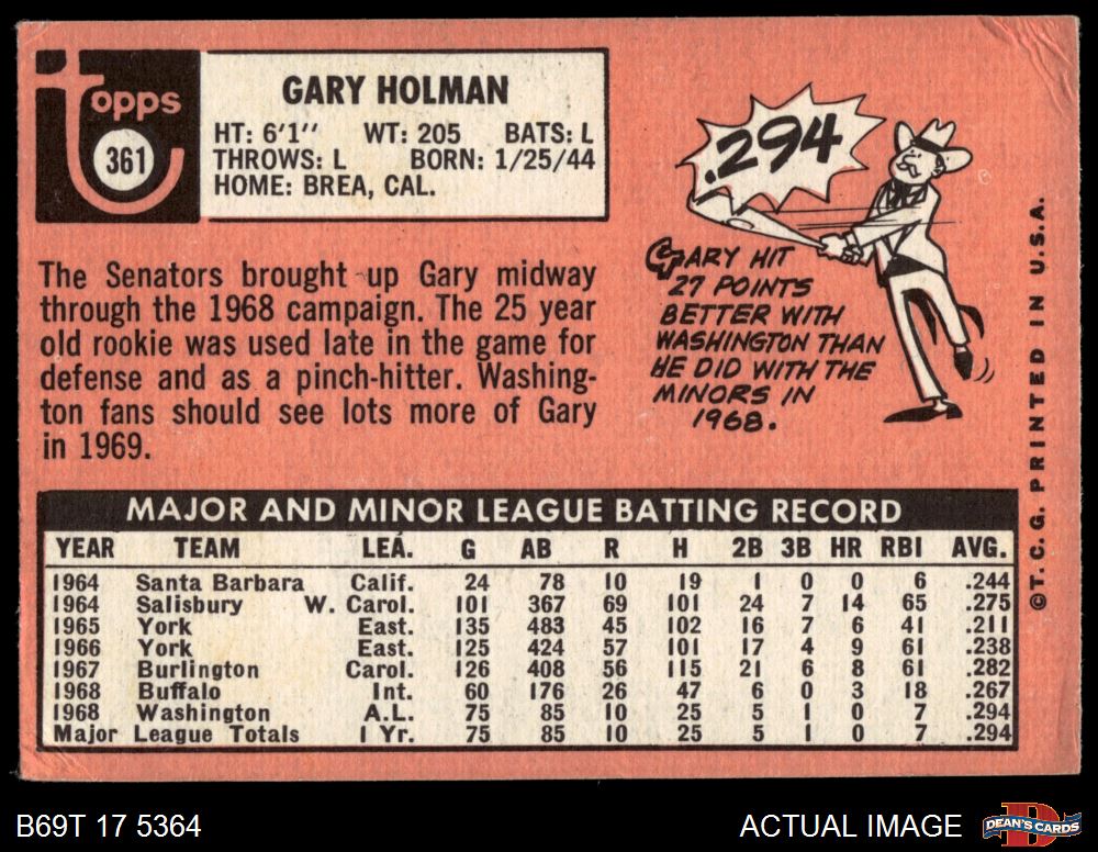 1969 Topps #361 Gary Holman