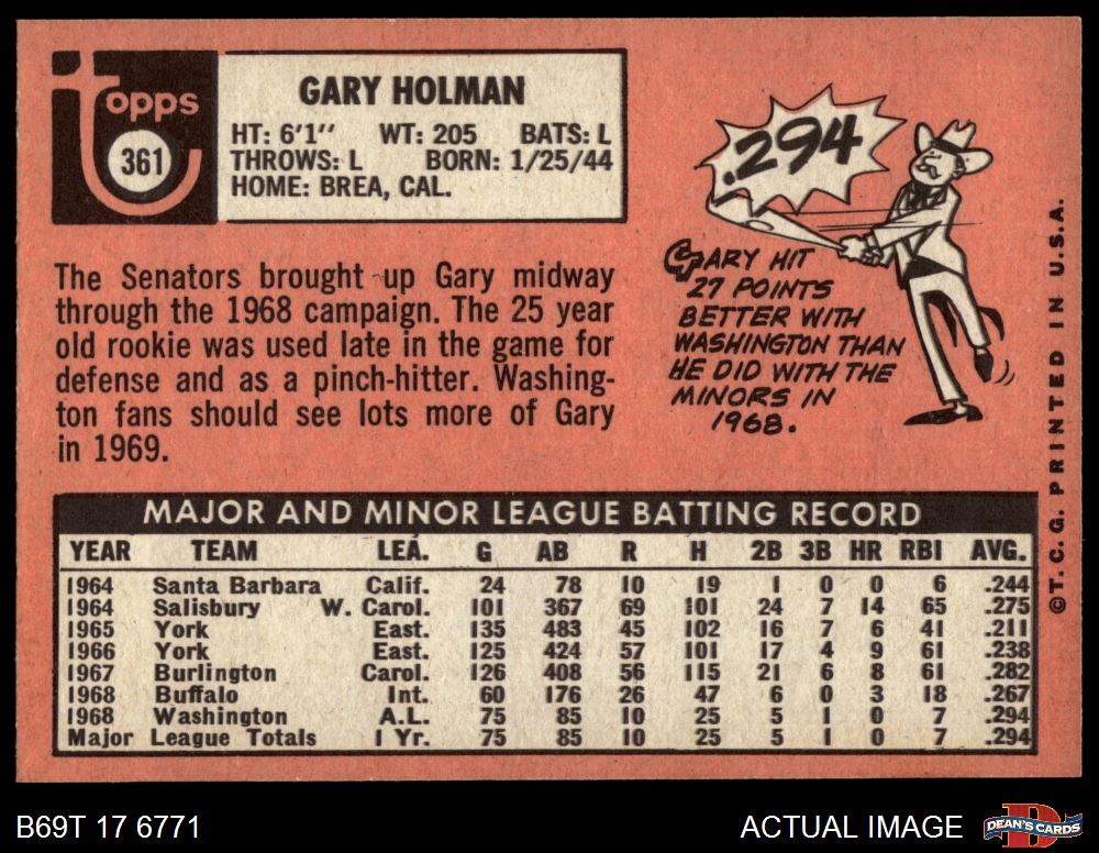 1969 Topps #361 Gary Holman 4 - VG/EX