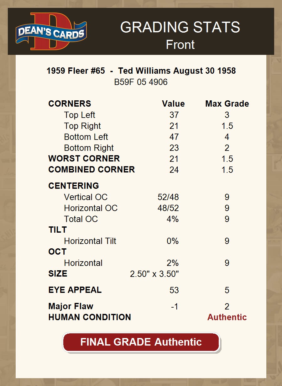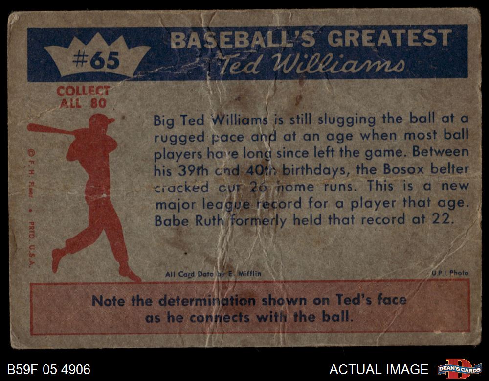 1959 Fleer #65 - Ted Williams August 30 1958 AUTHENTIC