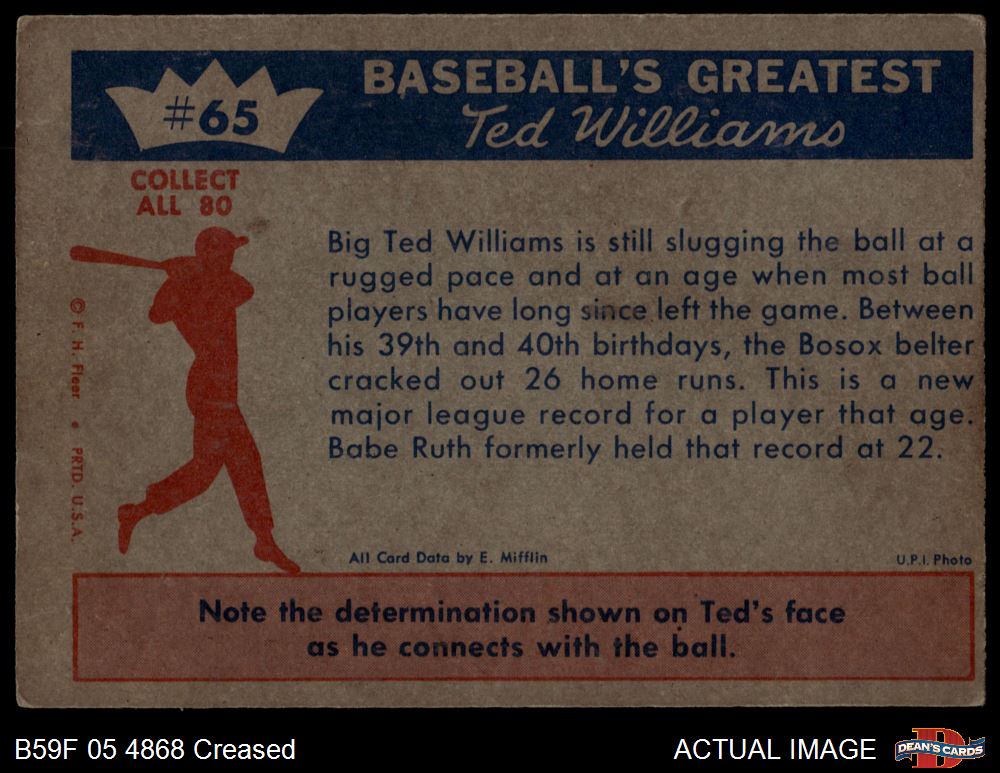 1959 Fleer #65  -  Ted Williams August 30 1958 Front Thumbnail