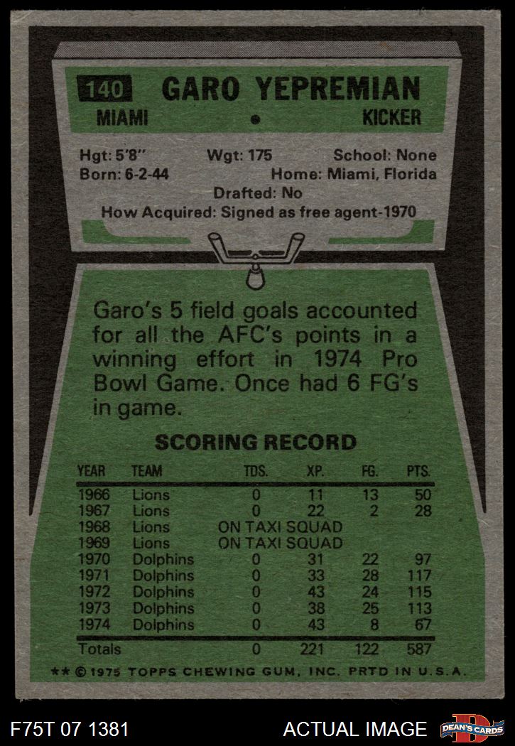 1975 Topps #140 Garo Yepremian 4 - VG/EX