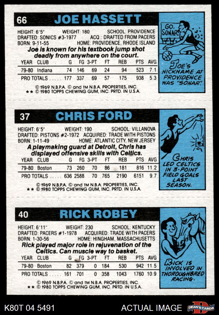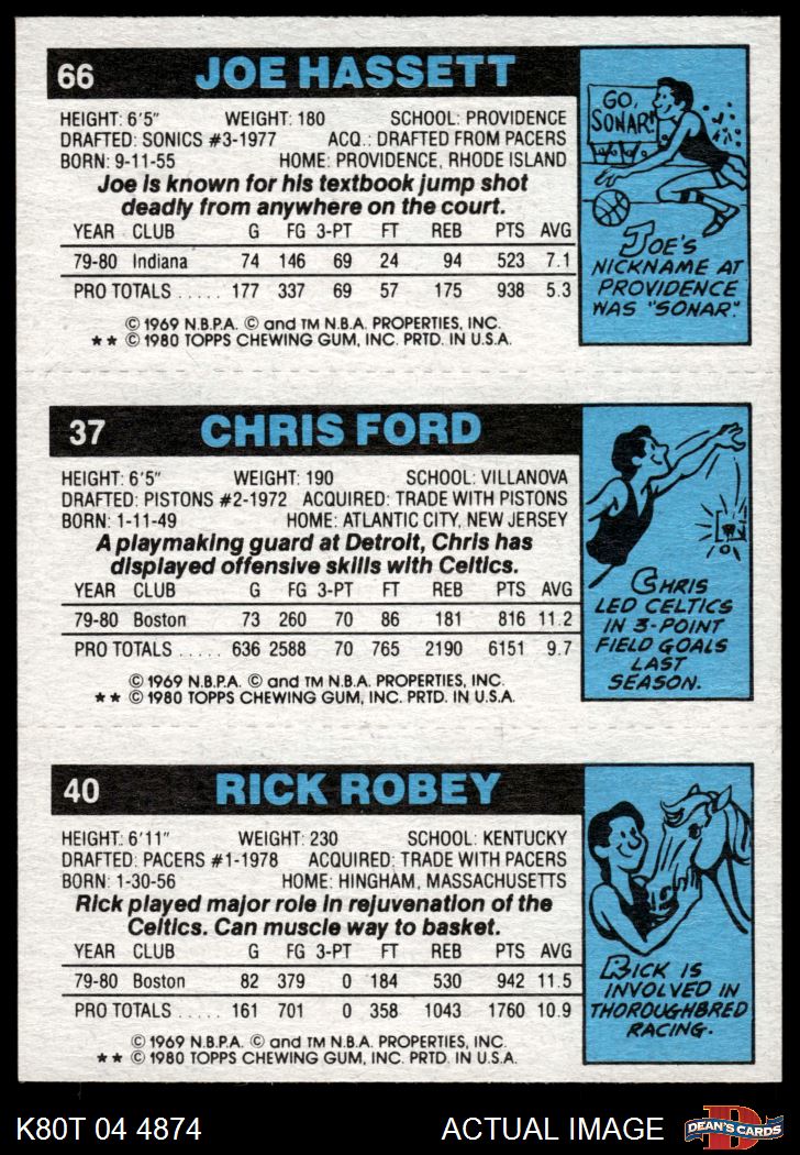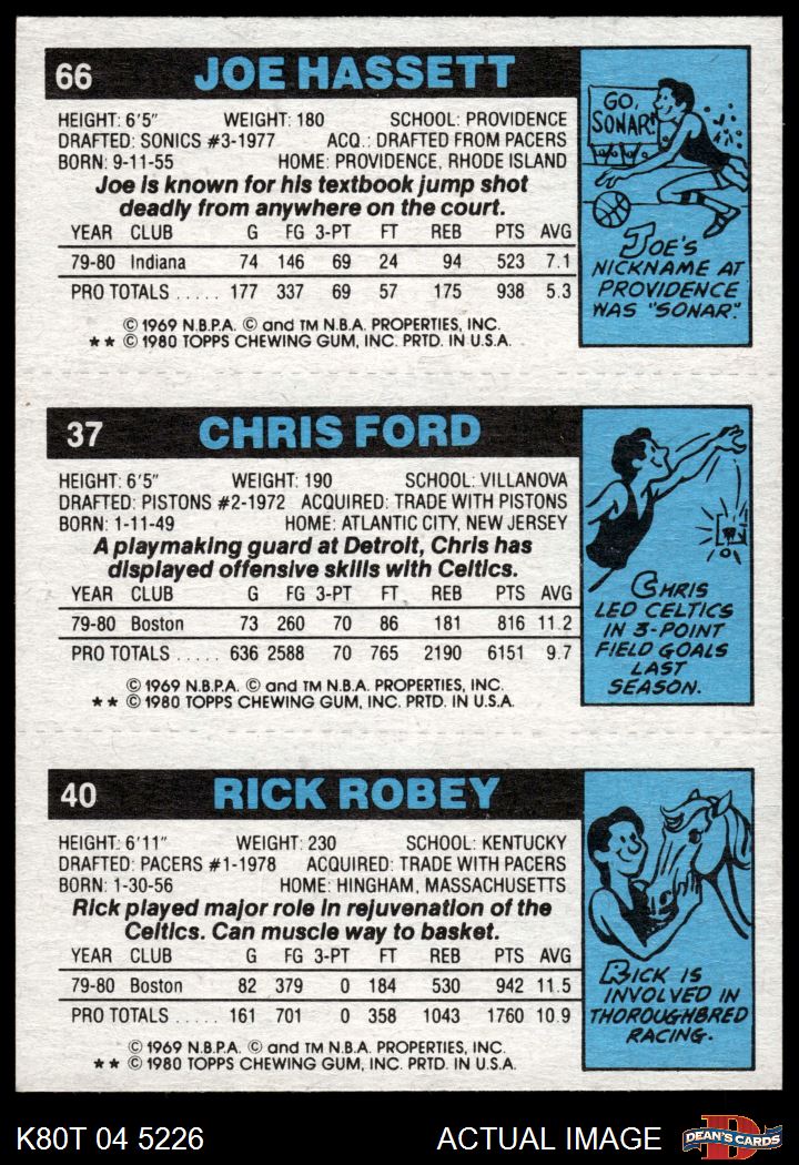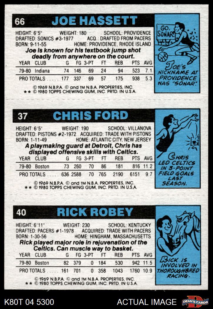 1980 Topps - Rick Robey / Chris Ford / Joe Hassett 40 / 37 / 66 8 - NM/MT
