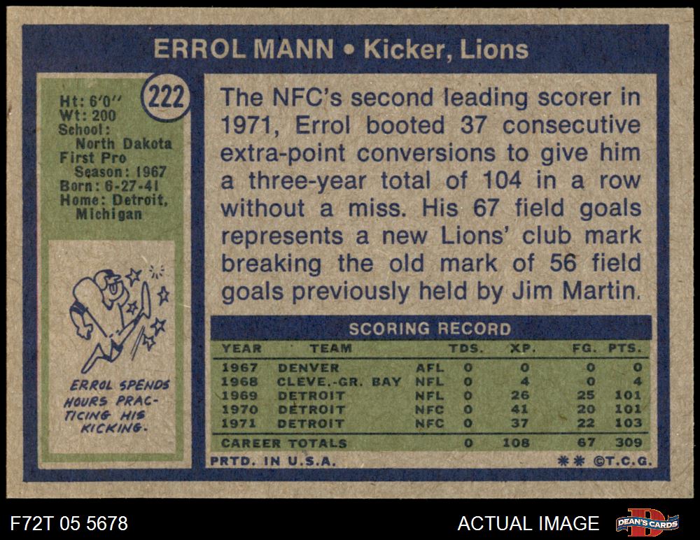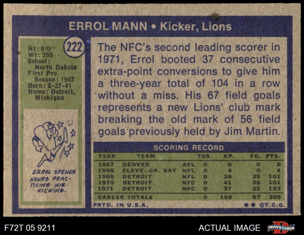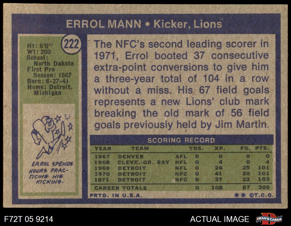 1972 Topps #222 Errol Mann 6 - EX/MT
