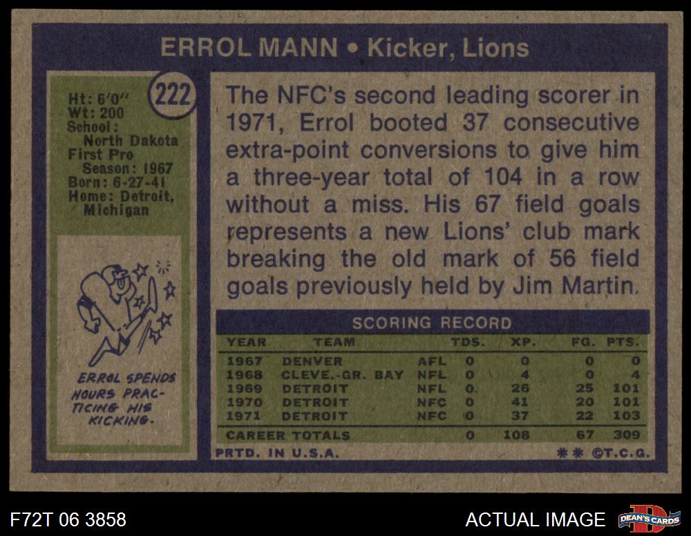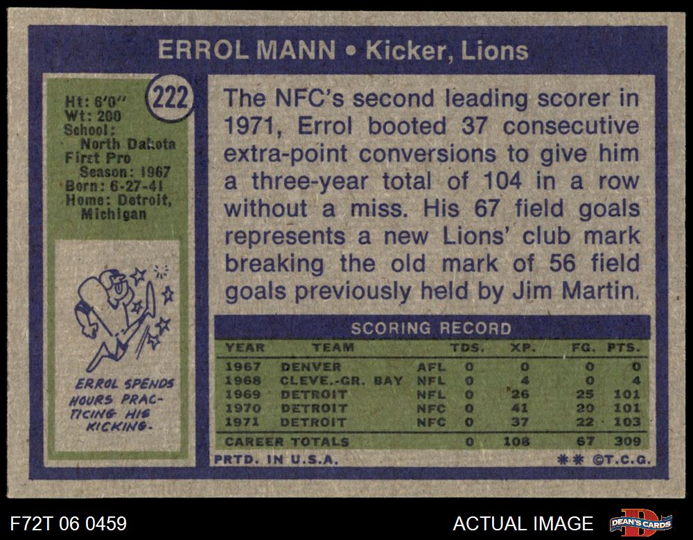 1972 Topps #222 Errol Mann 8 - NM/MT