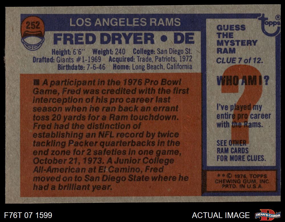 1976 Topps #252 Fred Dryer
