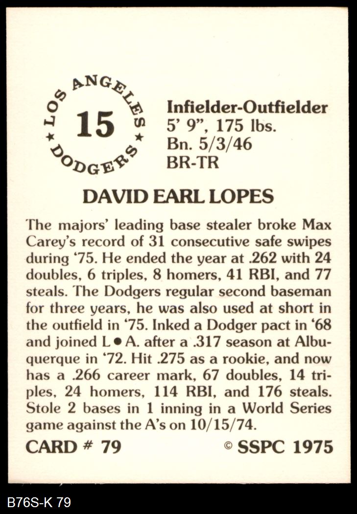 1975 SSPC #79 Dave Lopes 8 - NM/MT
