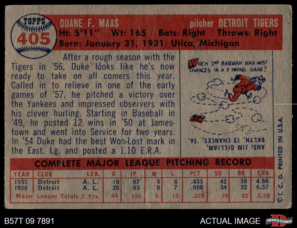 1957 Topps #405 Duke Maas 1.5 - FAIR