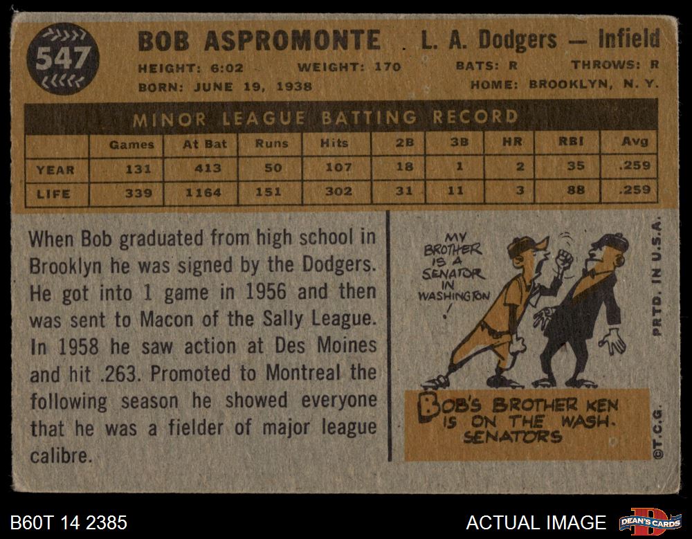 1960 Topps #547 Bob Aspromonte 1.5 - FAIR
