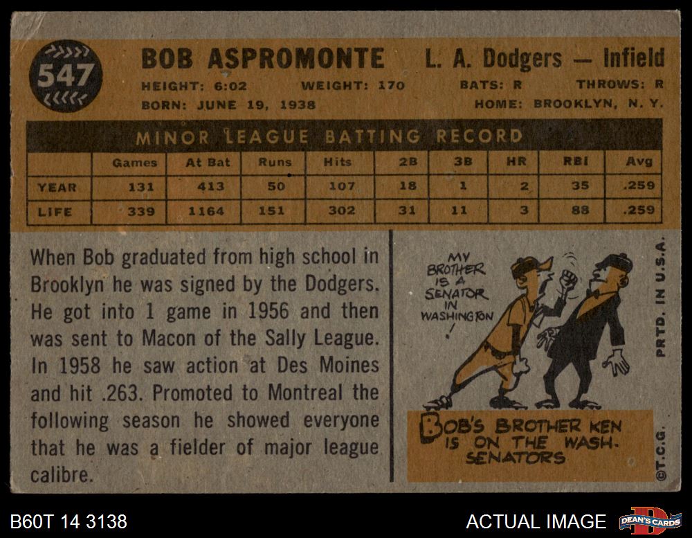1960 Topps #547 Bob Aspromonte